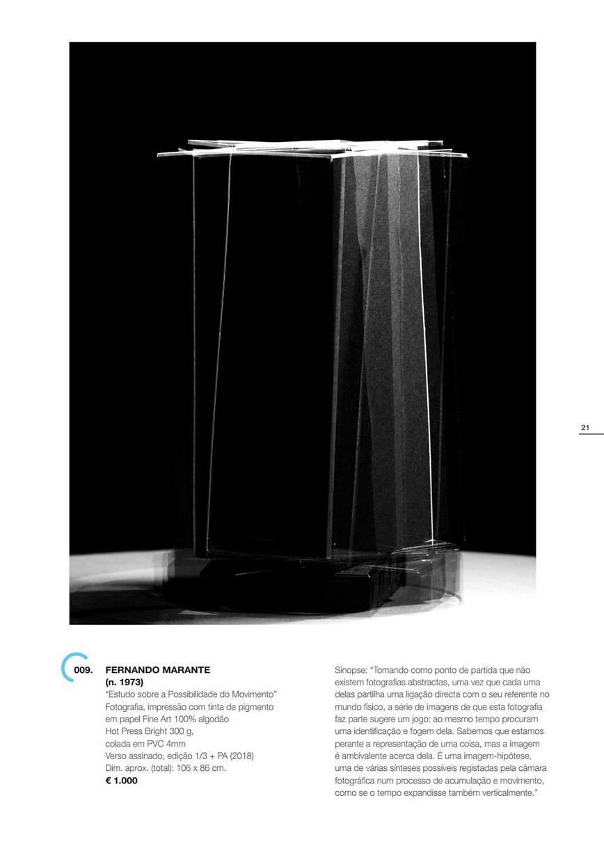 Los participantes de Descubrimientos 2019 han sido seleccionados a través de una convocatoria abierta. Además algunos de ellos forman parte de las iniciativas It Makes Art y de Futures 2019. Todos ellos tendrán la oportunidad de ser el Ganador de Descubrimientos 2019, que supone tener una exposición individual en la próxima edición del festival. Instituciones amigas como la Embajada de Portugal e Instituto Camoes apoyan con la participación de dos fotógrafos portugueses, el Institut d’Estudis Baleàrics – IEB un año más se suma a la actividad con la movilidad de cuatro residentes o nacidos en las Islas Baleares y, gracias a la Embajada de Lituania, un fotógrafo del país podrá asistir al visionado de manera gratuita. Seleccionados Descubrimientos 2019: (...) Fernando Marante (...).